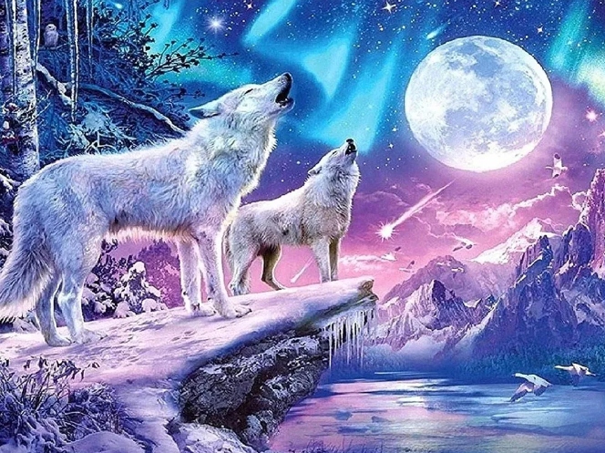 ✅ Схема: воющие волки, волчья стая, зимний пейзаж