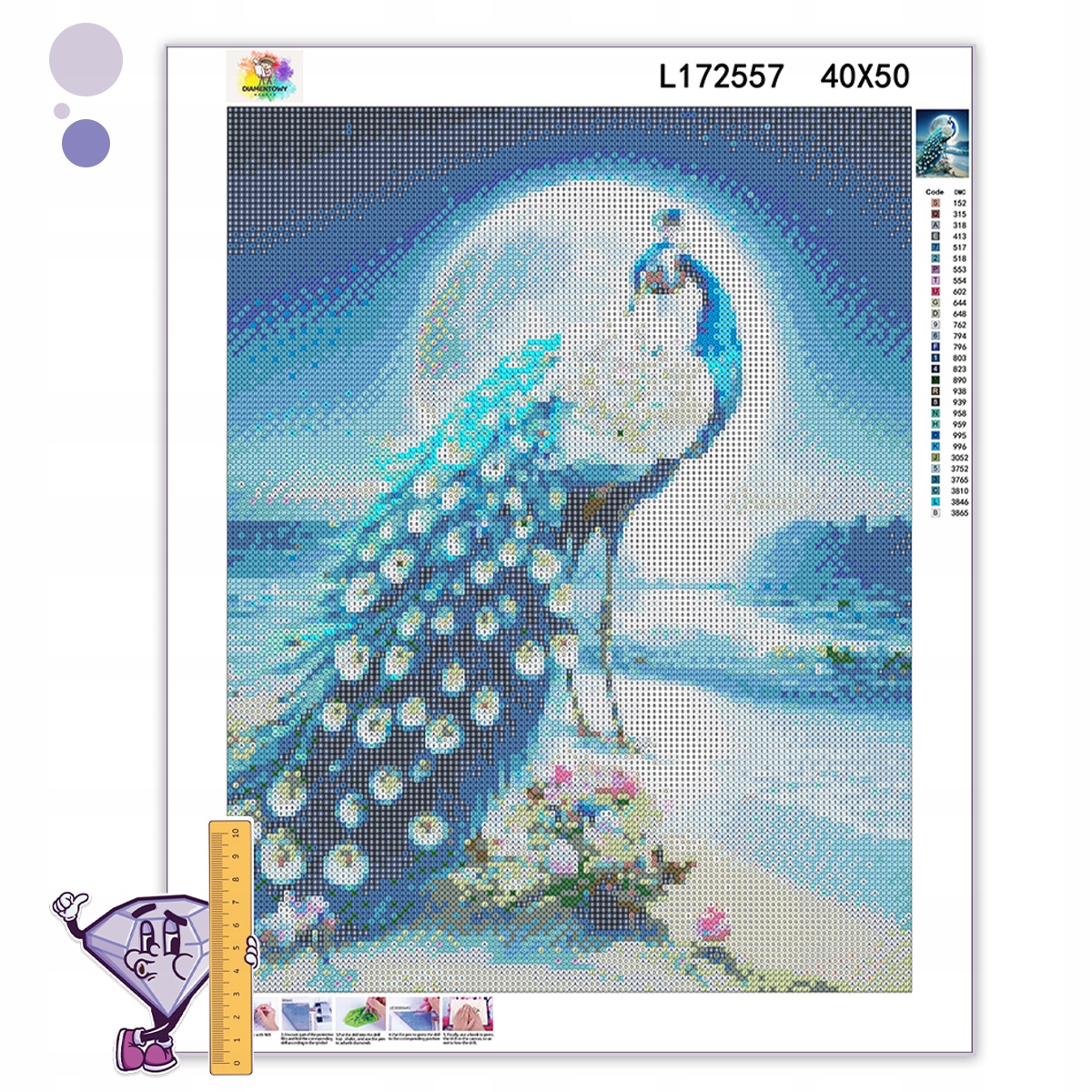 АЛМАЗНА ВИШИВКА ВЕЛИКА 40x50 Алмазна картина Мозаїка Алмазна квітка павича XL