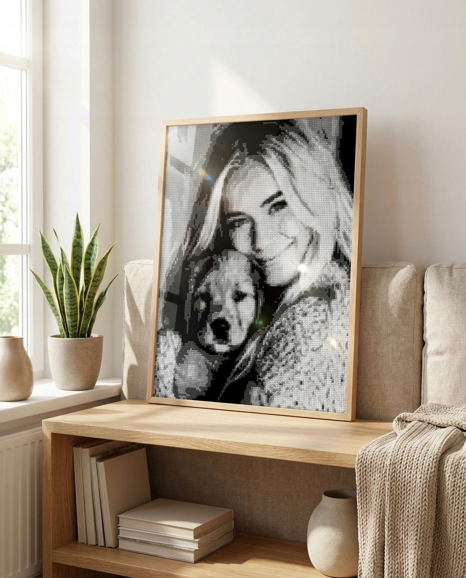 Набор «Сделай сам» - это идеальный, креативный подарочный набор для взрослых и детей, который позволяет создать эффектное изображение из бриллиантов на основе любимой фотографии.