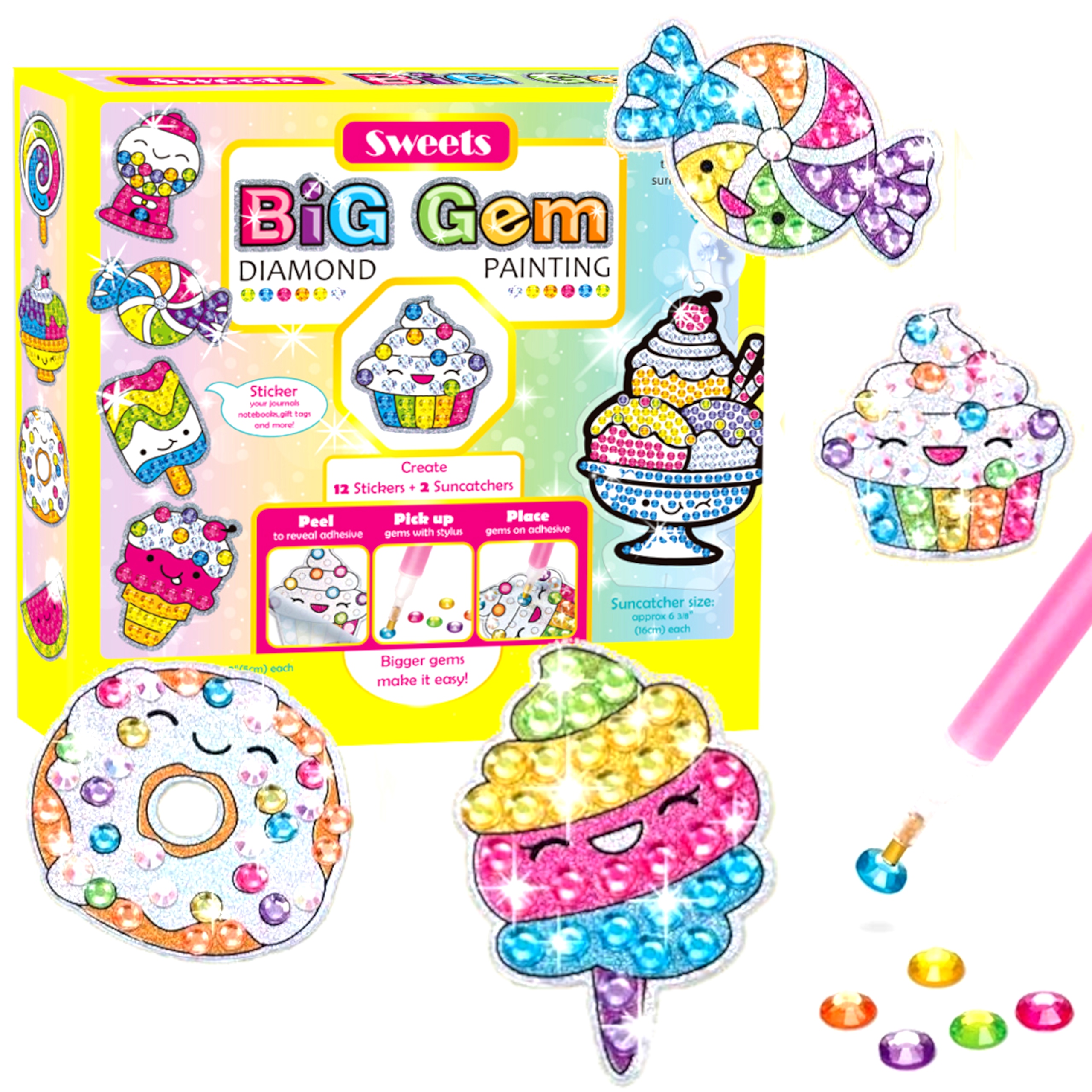 + 80 БЕСПЛАТНЫХ СТИКЕРОВ-ЭМОДЗИ!АЛМАЗНАЯ ВЫШИВКА, МОЗАИКА ДЛЯ ДЕТЕЙ - СЛАДОСТИБОЛЬШОЙ НАБОР - 1000 разноцветных бриллиантов, 12 наклеек, 2 больших украшения и другие аксессуары.
