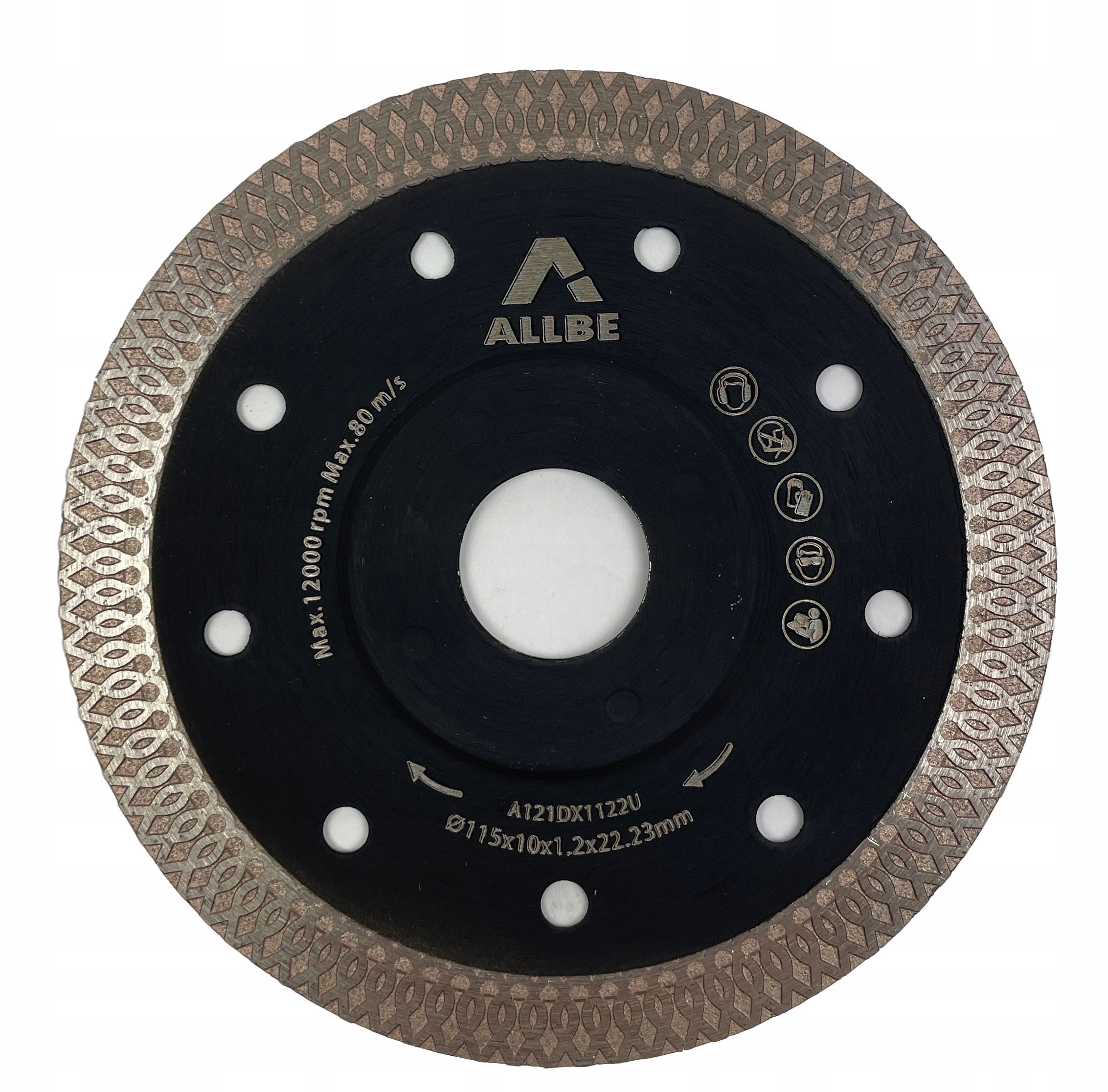 Алмазные диски ALLBE предназначены для самых требовательных пользователей и профессионалов. В диске используется специальный алмазный сегмент высочайшего качества, который также предназначен для шлифовки боковых сторон при резке. Очень малая толщина диска (1,2 мм) обеспечивает точную резку, а очень мелкое алмазное зерно позволяет работать без повреждения плитки. Сегмент высотой 10 мм продлит срок службы и возможность работы с более толстой плиткой.