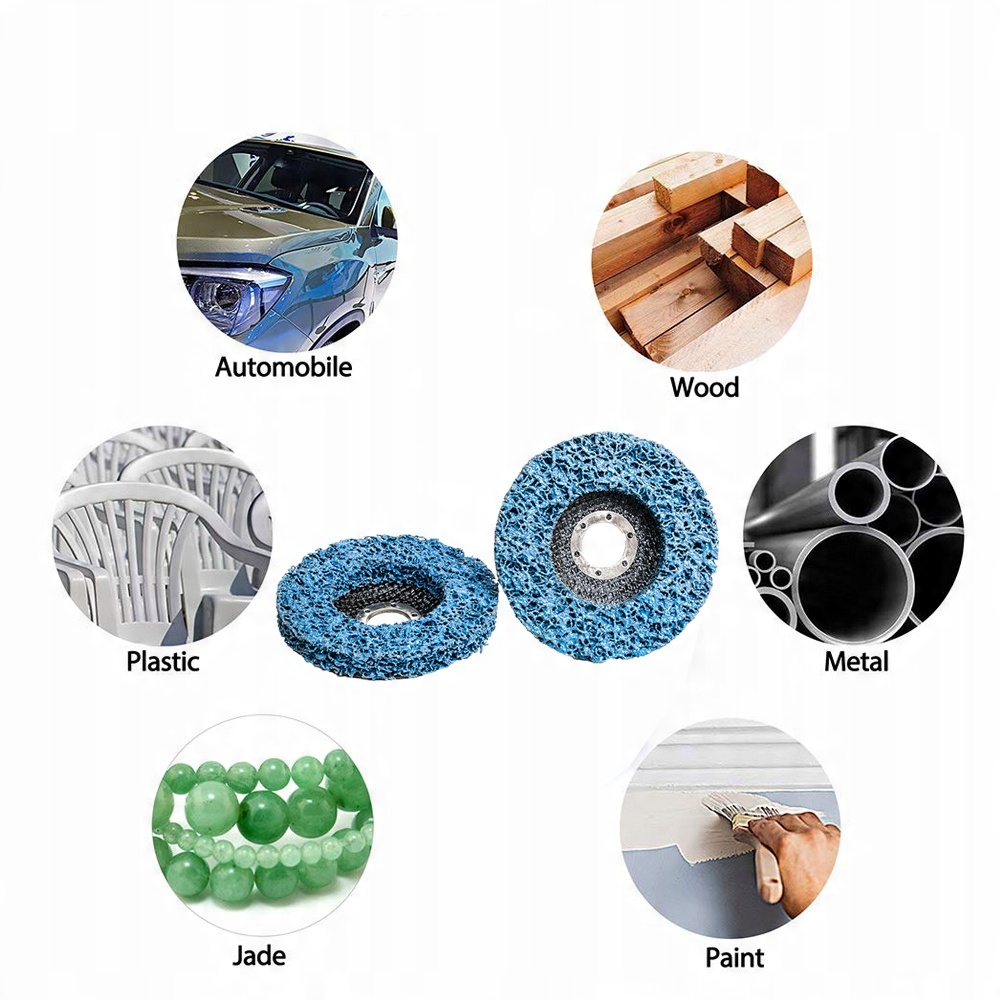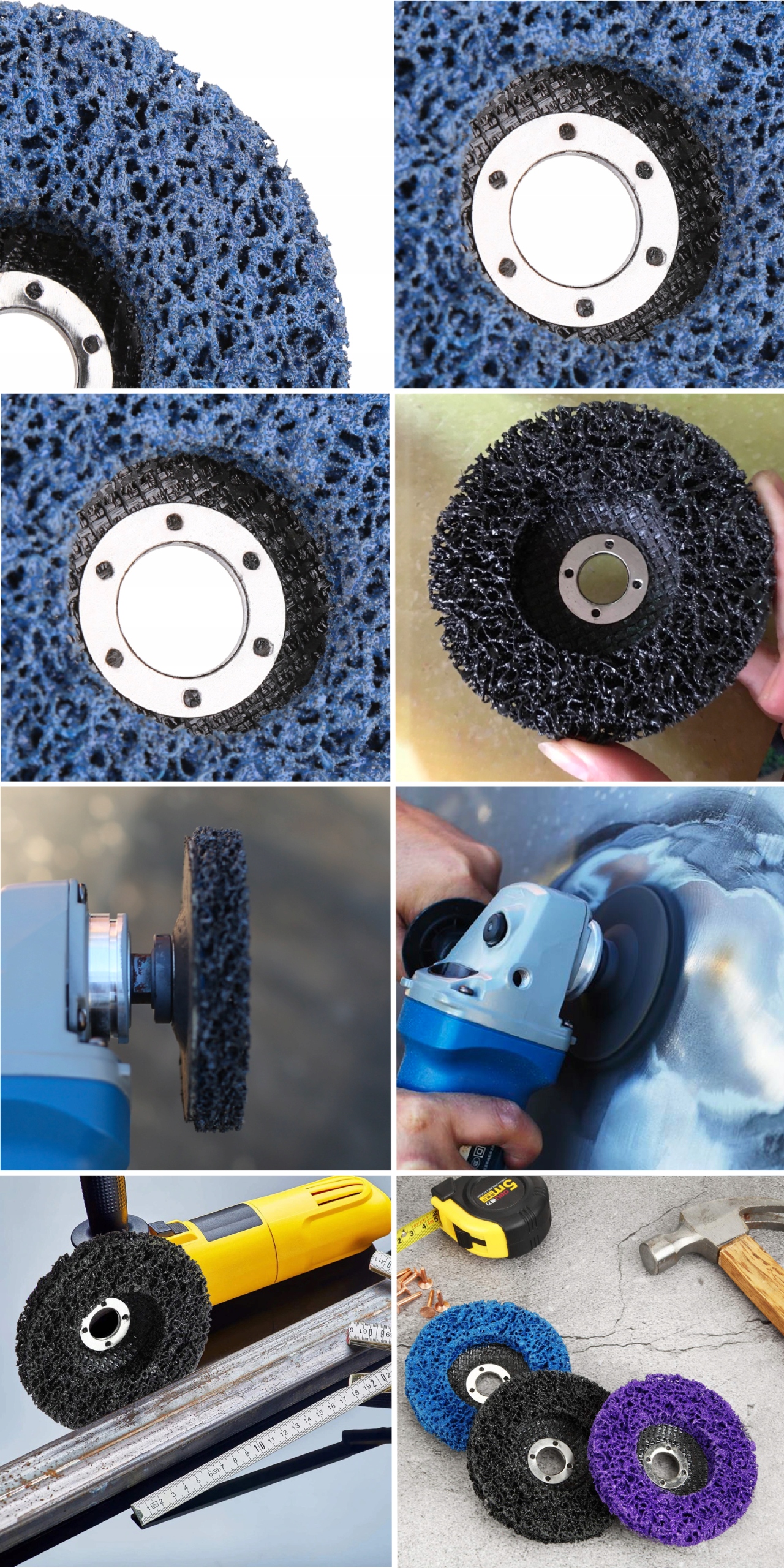 Совместимость с широко используемыми электрическими или пневматическими шлифовальными машинками диаметром 125 и 115 мм с легкосъемными дисками для очистки и удаления краски, ржавчины и окисления поверхности. p >