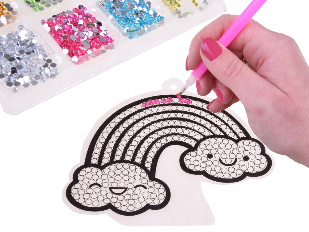 Креативный набор «Магия алмазной вышивки» – самая модная творческая забава для детей в этом сезоне. Набор позволяет создавать красивые узоры из бриллиантов сказочной окраски. Игра заключается в выборе ромбов подходящего цвета и переносе их на шаблон с помощью клея с помощью специальной ручки. Расположив элементы, получаем красивое, красочное украшение. С помощью пластиковых подставок и силиконовых присосок с крючками, входящих в комплект, готовые работы можно разместить, например, на столе, полке, повесить на окно, зеркало или использовать для украшения любимого блокнота, портфеля или дневник.