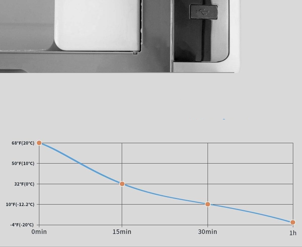 - Замораживает без льда, ускоряет охлаждение. Мощная охлаждающая способность от -20°C до 20°C. Походный холодильник Alpicool G22 можно использовать как холодильник и морозильник, он охлаждается до 0°C за 30 минут.