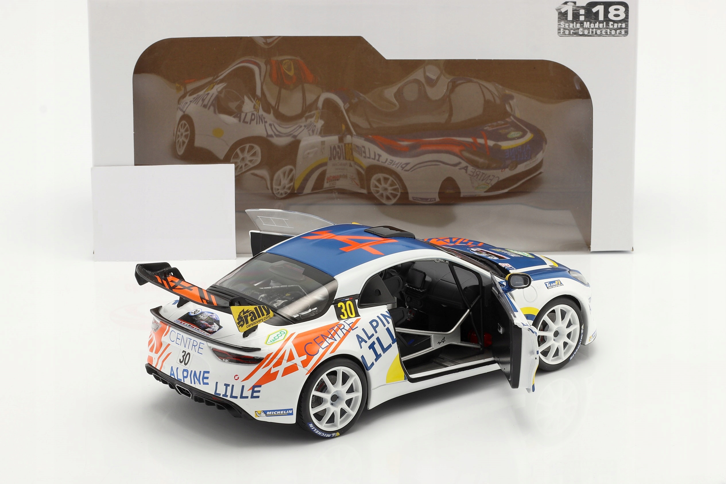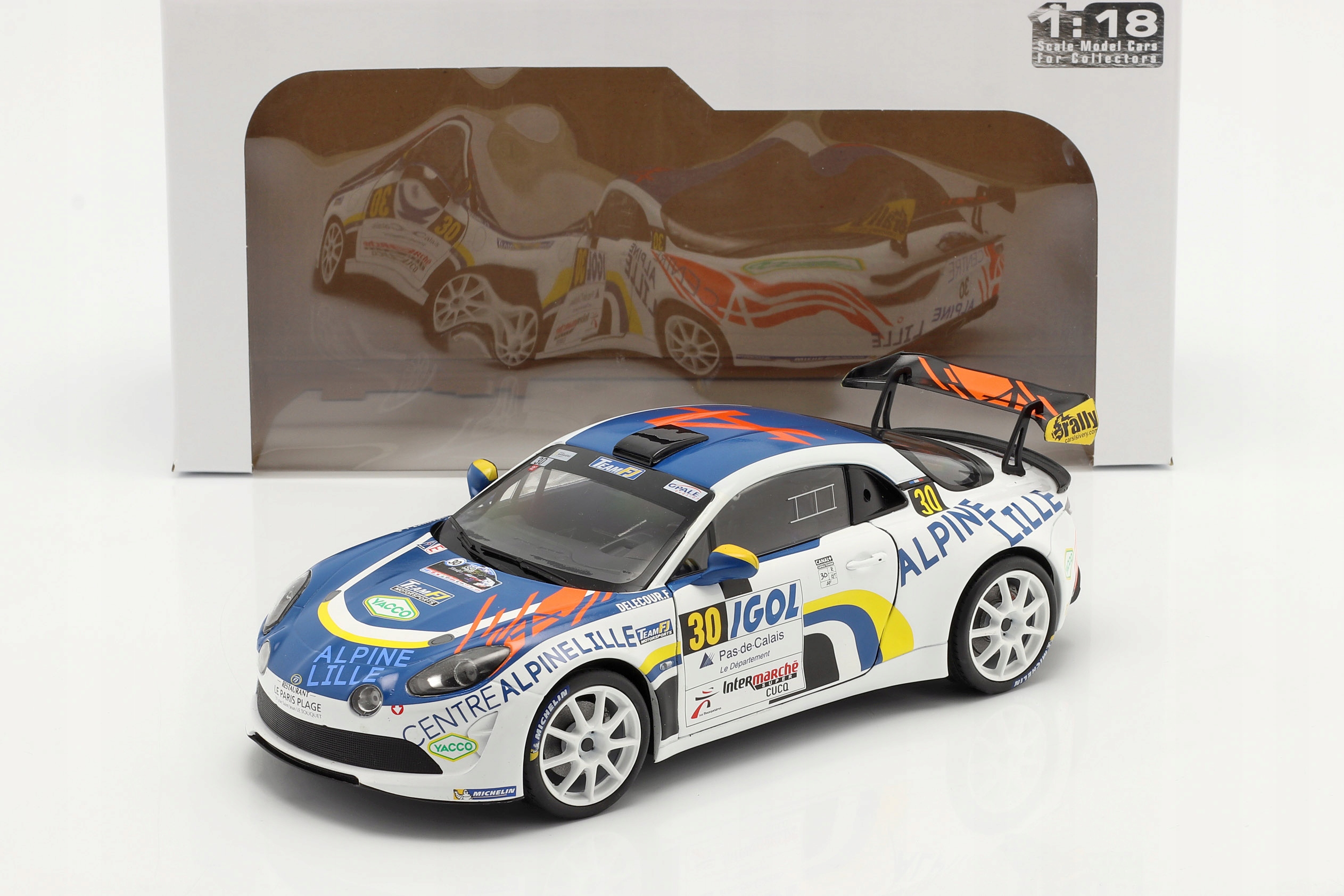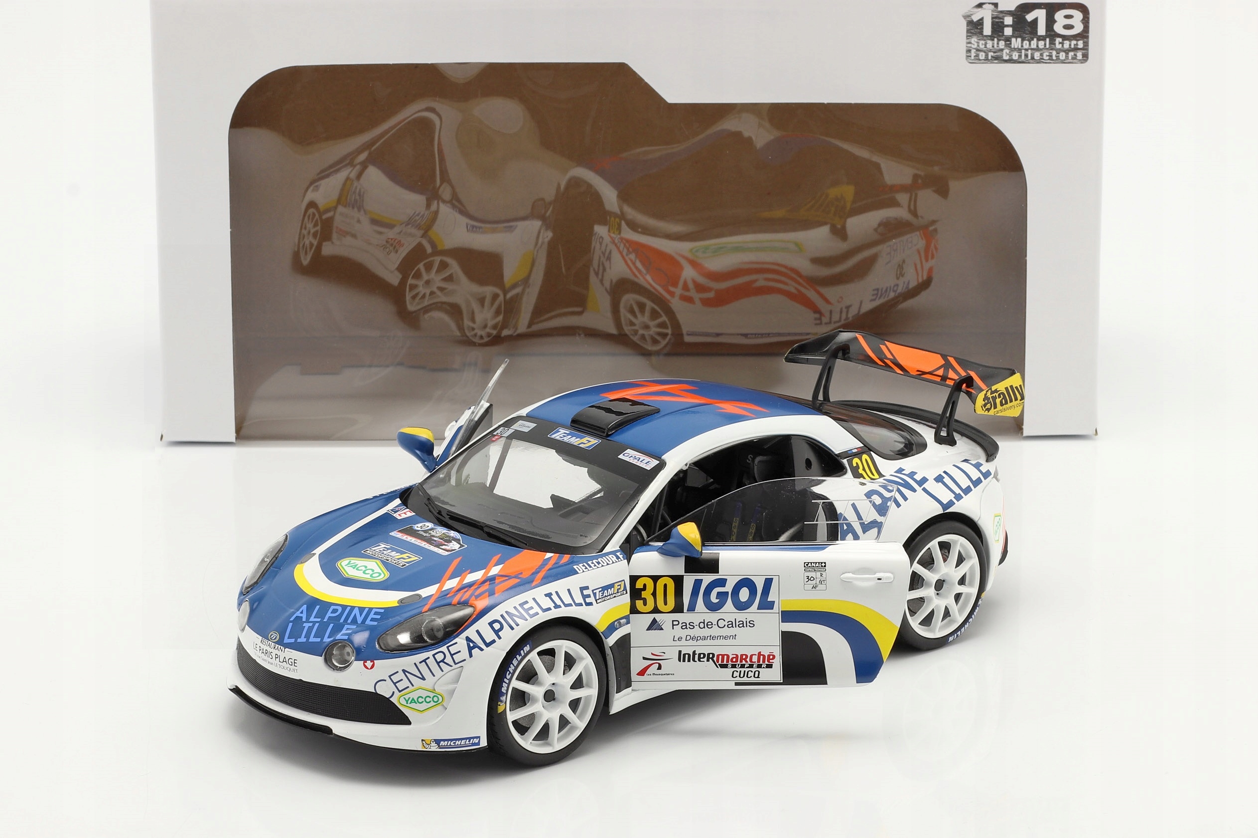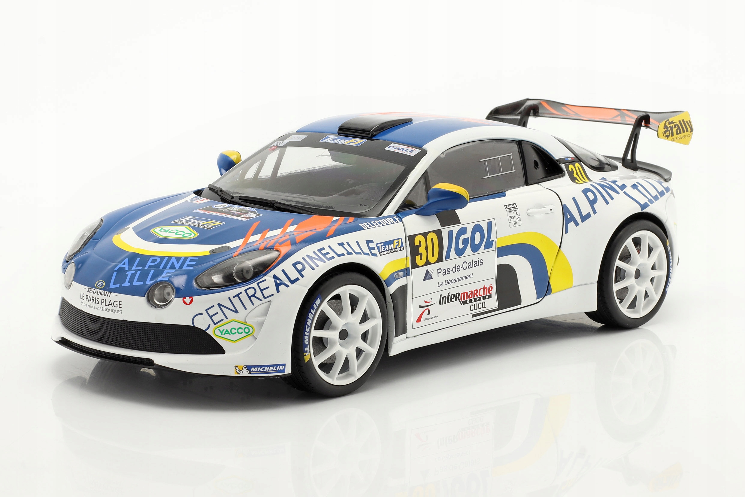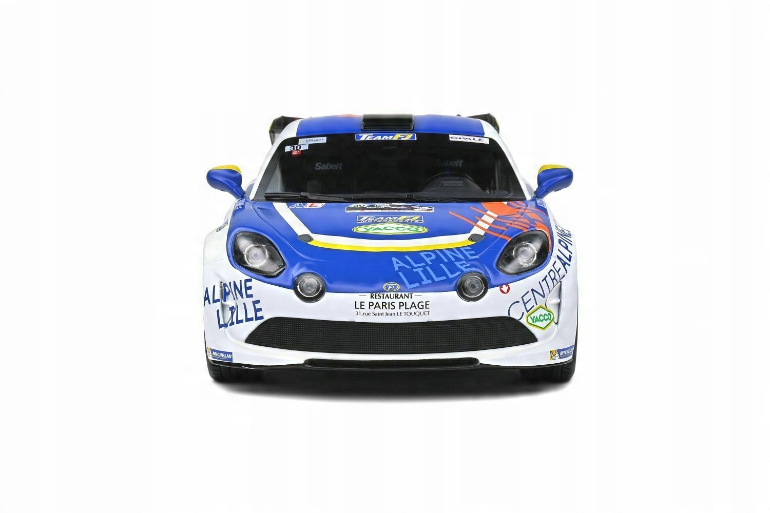 Коллекционная металлическая модель автомобиля Alpine A110 Rally RGT #30 11-го Rallye du Touquet 2020 Франсуа Делекура и Жана-Родольфа Гигонне Team FJ в масштабе 1:18 от Solido. Каталожный номер: S1801608