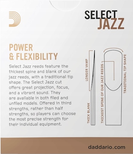 Тростник Select Jazz Unfield RRS10ASX3H от D'Addario разработан с учетом потребностей джазовых музыкантов. Серия тростей SELECT JAZZ предлагает трости в двух вариантах нарезки: французском - НАПИЛЕННОМ и американском - НЕПИЛЕННОМ, а также в нескольких размерах (от 2,0 до 4,0) и твердости (Мягкий-Средний-Жесткий). У них тёмный, сильный, сфокусированный звук, который так нравится джазовым музыкантам.