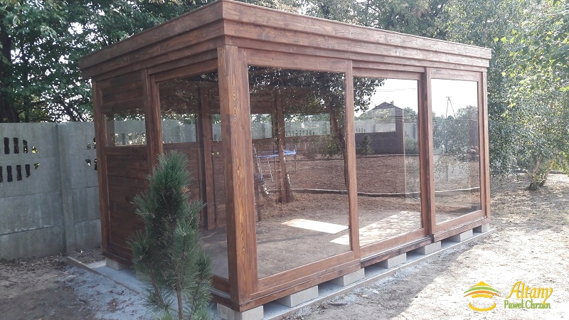 Беседка прямоугольная стеклянная из сушеной древесины сосны, размер 3х4,8 м.
