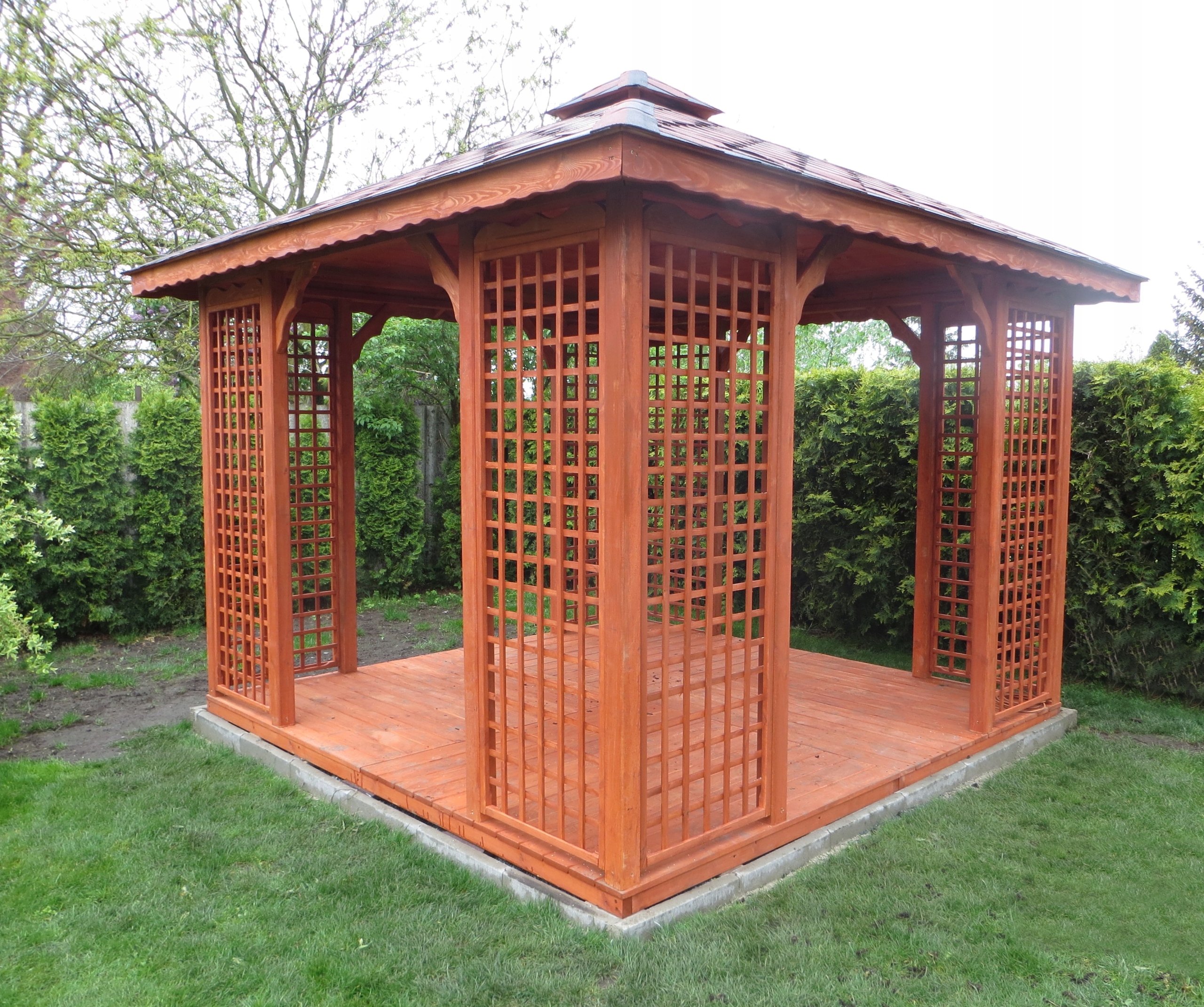 Предмет аукциона — беседка модели П2 размерами 3 х 3 м (внешние размеры измерены по полу, между противоположными опорными столбами).