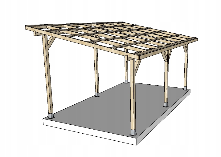 Предлагаем Вам деревянную конструкцию навеса для автомобиля внешними размерами 560 х 360 см.