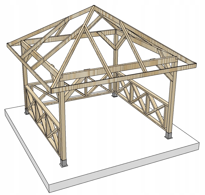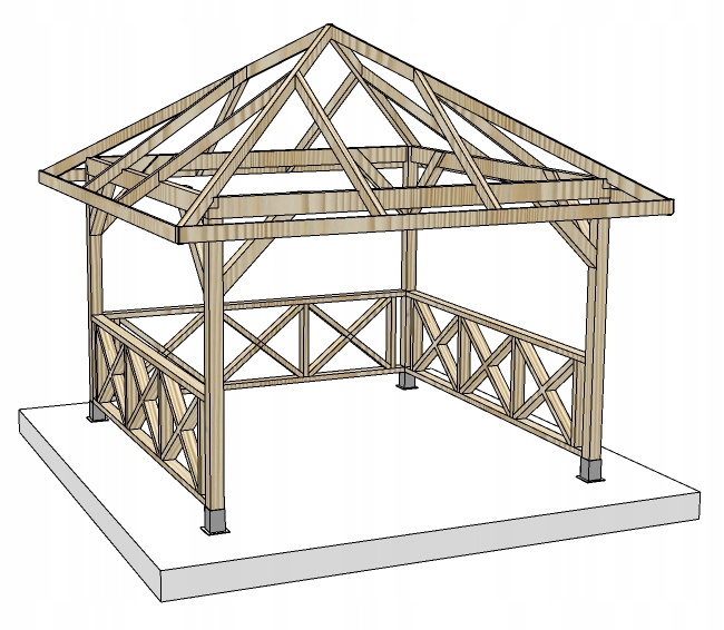 Предлагаем Вам деревянную конструкцию беседки внешними размерами 350 х 350 см.