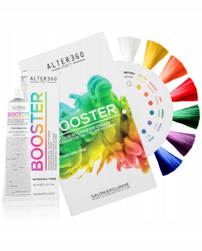 ALTER EGO Booster — крем для усиления цвета, который, в зависимости от желаемого цветового эффекта, укрепляет или тонирует, обеспечивая насыщенный, интенсивный и яркий цвет.
