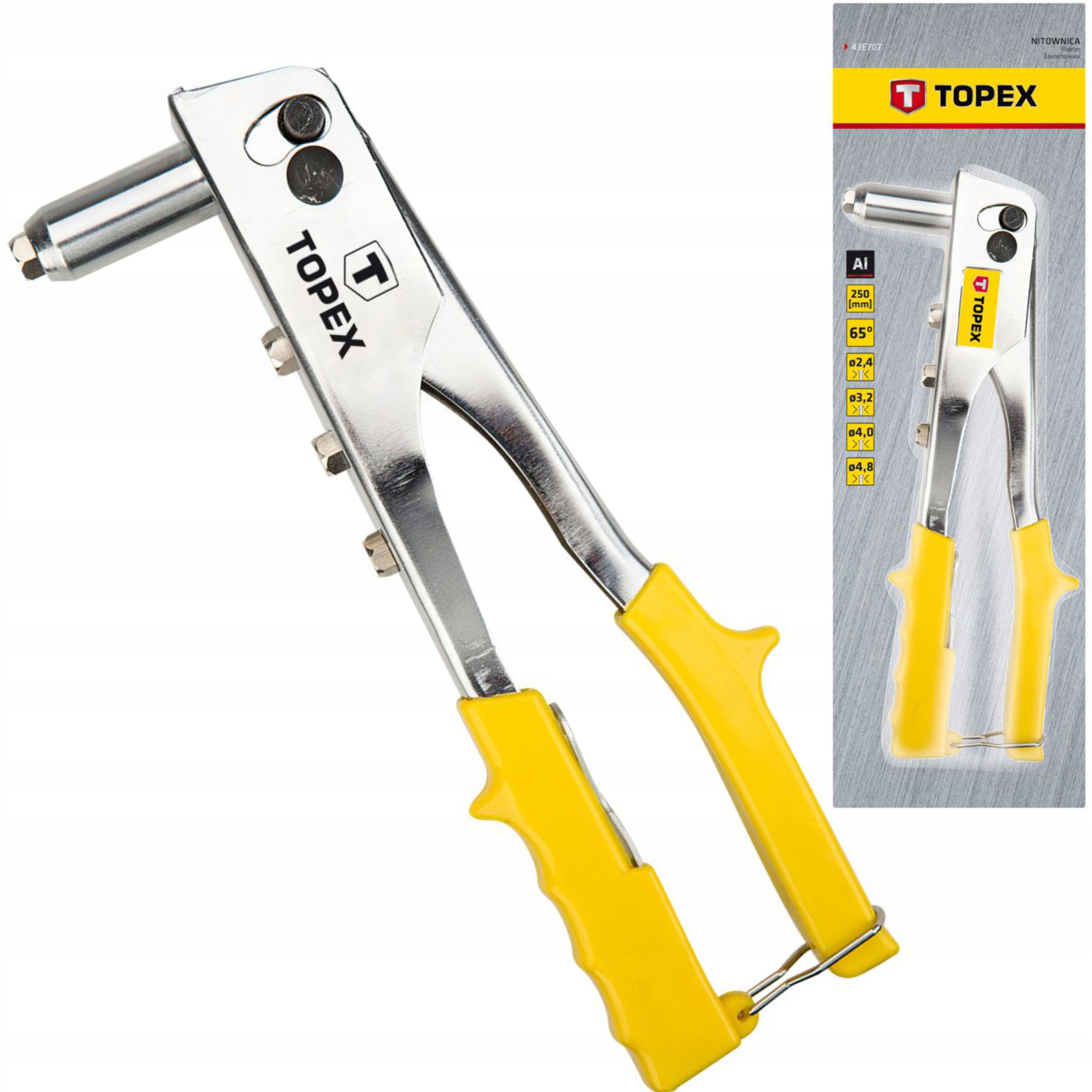Заклепочник TOPEX (арт. № 43E707) для алюминиевых заклепок диаметром 2,4, 3,2, 4,0, 4,8 мм. Верхняя ручка и корпус заклепочника из цельной стали. Удлиненная передняя часть головки облегчает клепку в труднодоступных местах. Удобные ручки со стопорным кольцом для удобства хранения. Бренд TOPEX ориентирован на любителей DIY.