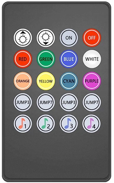 - 8 кнопок, которые постоянно включают цвета: красный, зеленый, синий, оранжевый, желтый, бирюзовый, фиолетовый и белый.