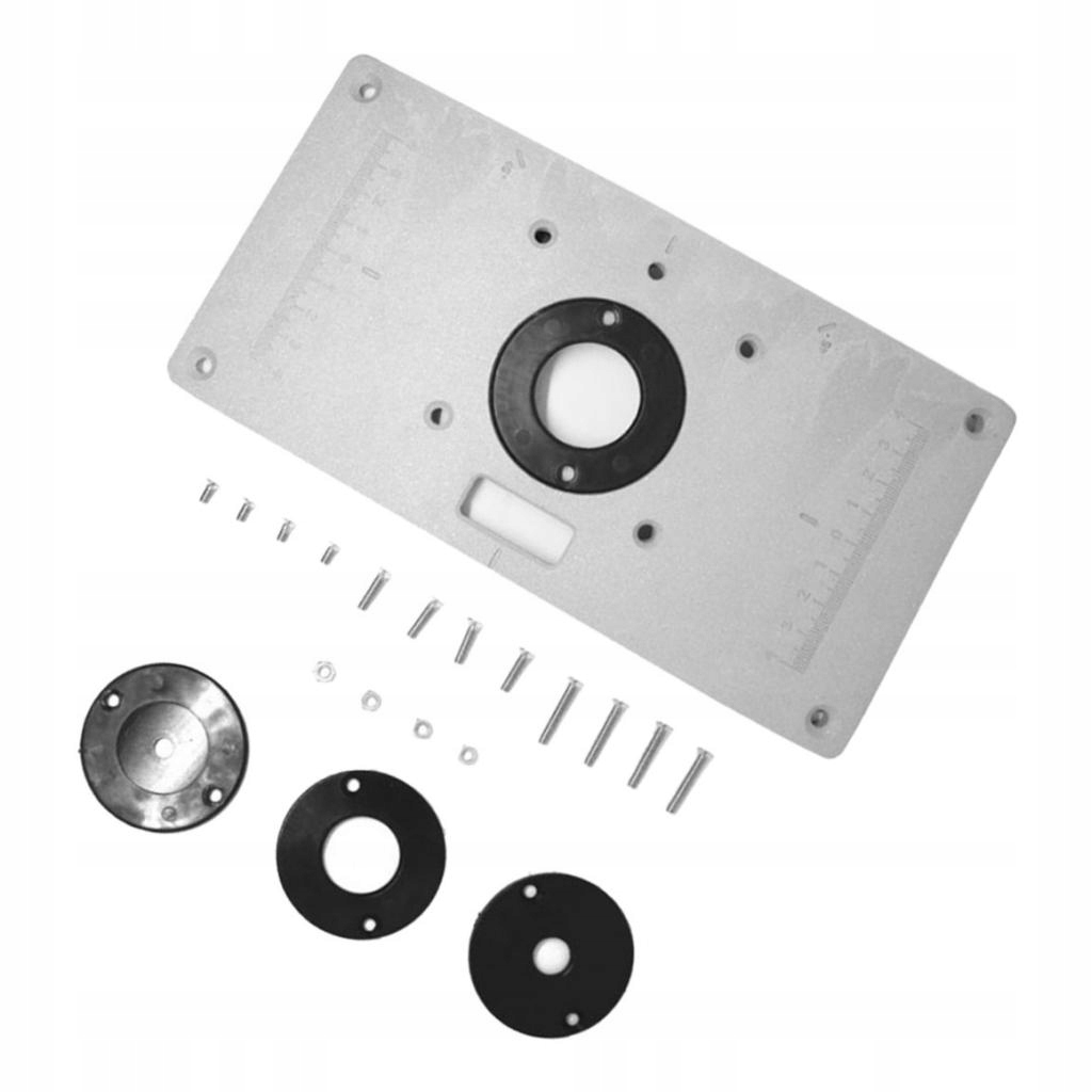 <р>1 . Установочная пластина стола фрезерного станка <р>4 . вставные кольца для маршрутизатора x1 комплект крепежных винтов