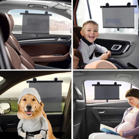 В комплект входят две рулонные шторы на боковые окна. Легко устанавливается с помощью присосок (прямо на стекло) или зажима (над стеклом). Моющийся, прозрачный материал, легко чистится. Присоски следует погрузить на некоторое время в теплую воду, чтобы они стали более гибкими, прежде чем прикреплять их к стеклу.