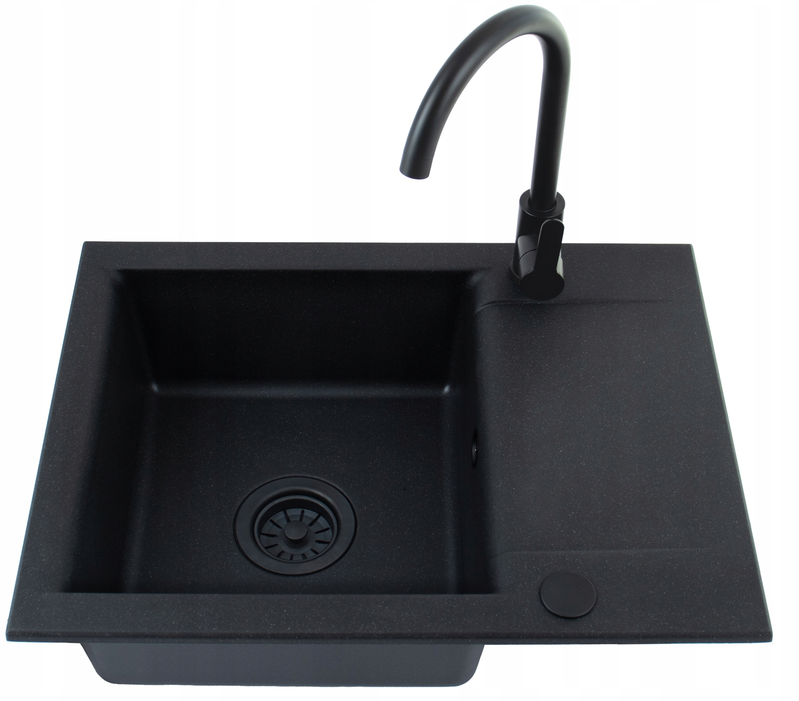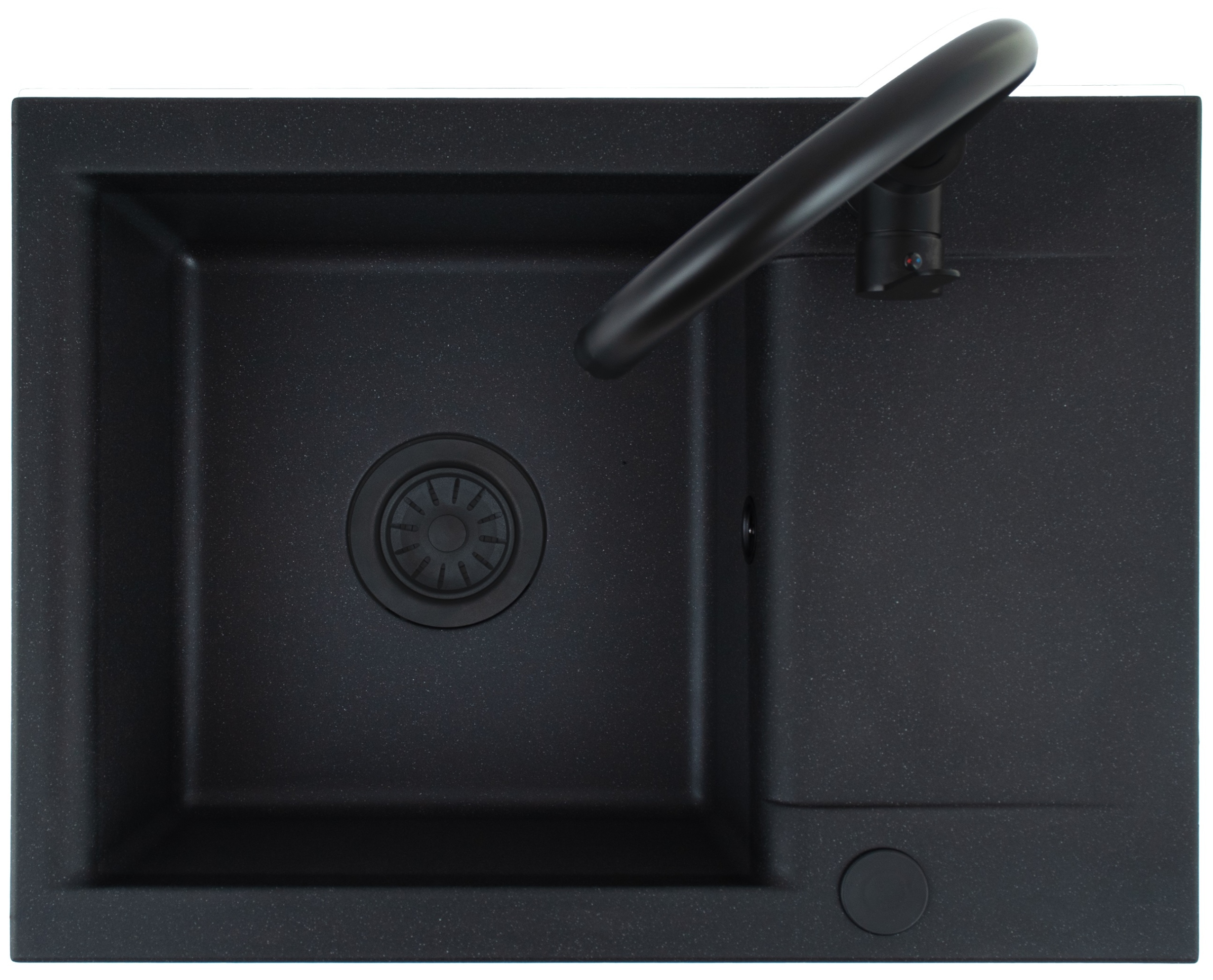 ALVEUS ОДНОБАСТРОВА ГРАНІТНА МИЙКА ОНІКС, ЧОРНИЙ СТЕК + MIX + СИФОНИ