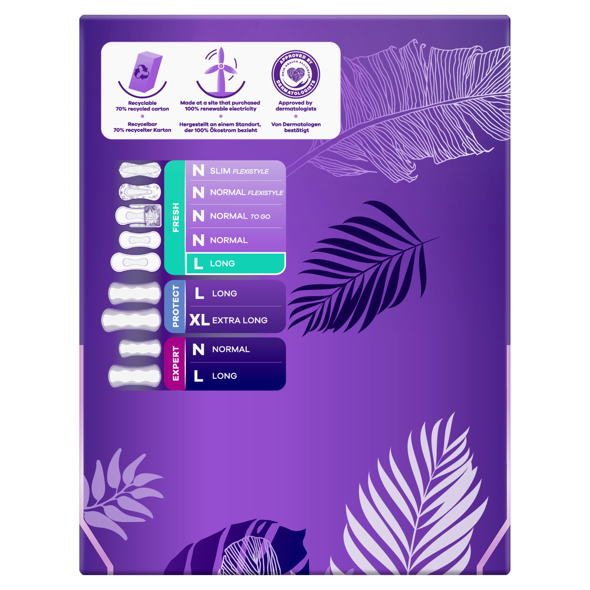 Удлиненные вставки обеспечивают соответствующий уровень защиты, а дышащий материал обеспечивает ощущение чистоты и свежести в течение всего дня. Они прекрасно впитывают вагинальные выделения и обеспечивают дополнительную защиту при нерегулярных менструациях и в дни с небольшими кровотечениями. Эти прокладки для трусов не содержат ароматизаторов.
