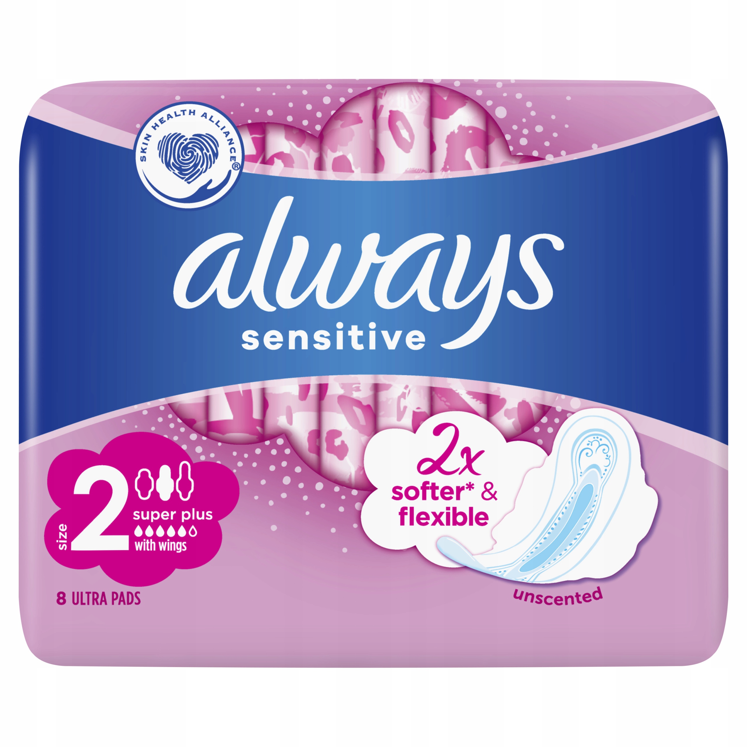 ALWAYS SENSITIVE SUPER PLUS SIZE 2 гігієнічні прокладки з крильцями 8 шт.