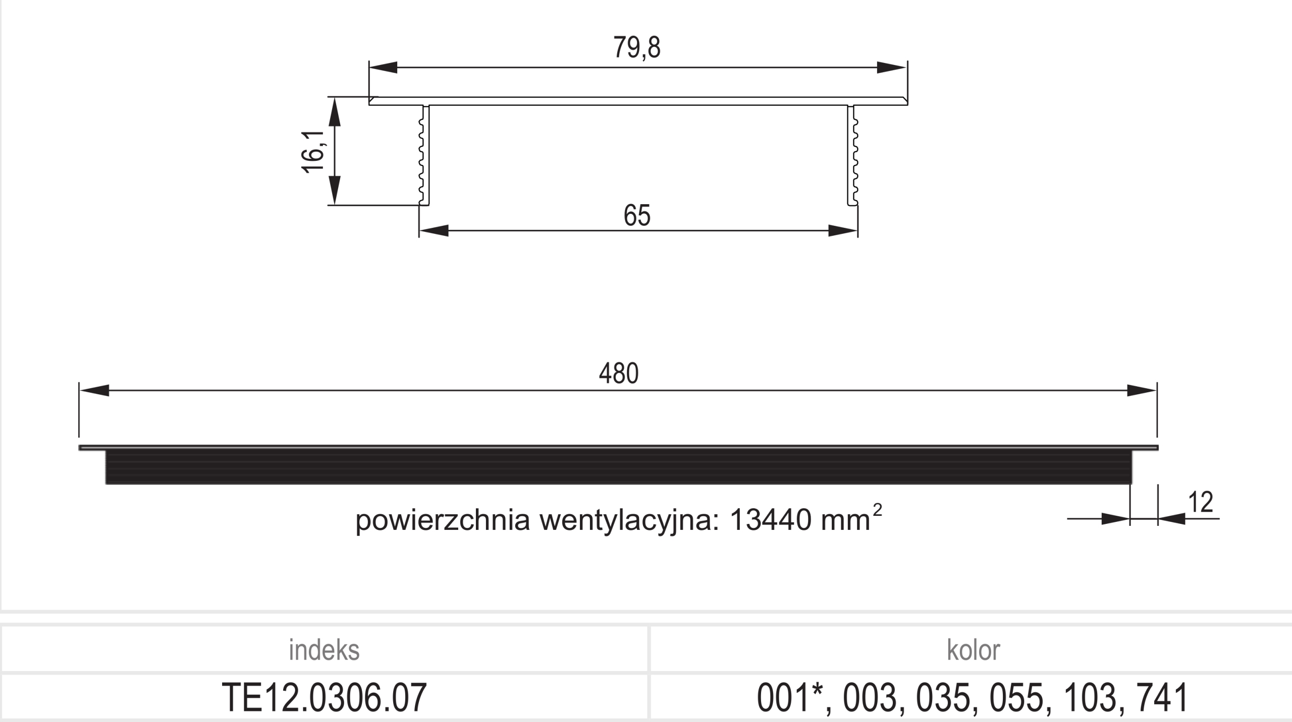 - Площадь вентиляции – 13440 мм²