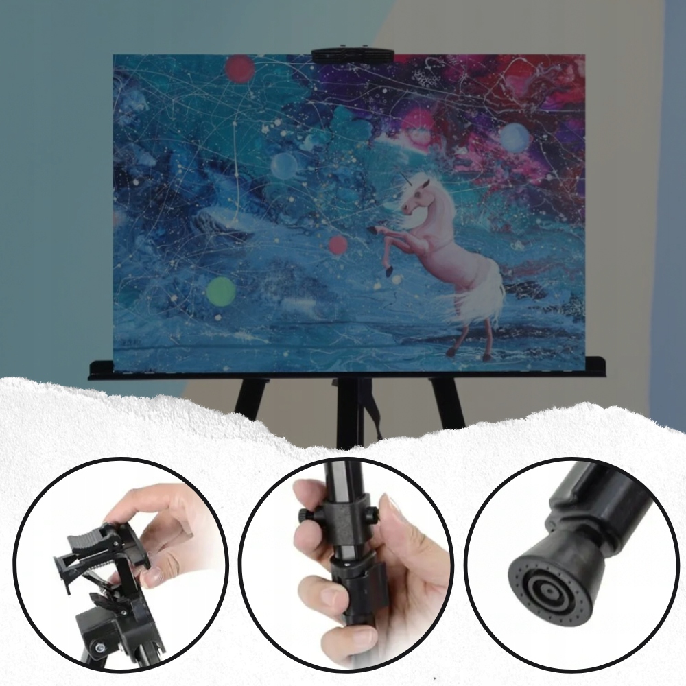 Они обеспечивают точную регулировку высоты мольберта. Регулируемая высота держателя для фотографий – одним движением зажима можно отрегулировать его по высоте и толщине изображения.