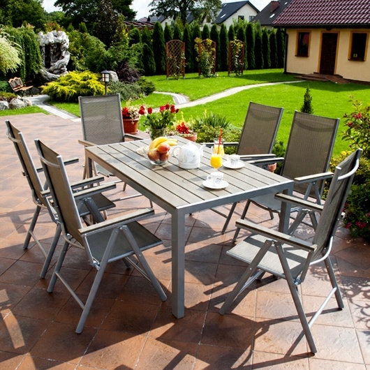 Садовая мебель MODENA очень проста и приятна в использовании. Каркас стола и стульев изготовлен из высококачественного алюминия с порошковым покрытием. Столешница набора MODENA представляет собой водонепроницаемую композитную плиту ДПК. Складные стулья с семипозиционной регулировкой спинки дарят ощущение комфорта и роскоши.