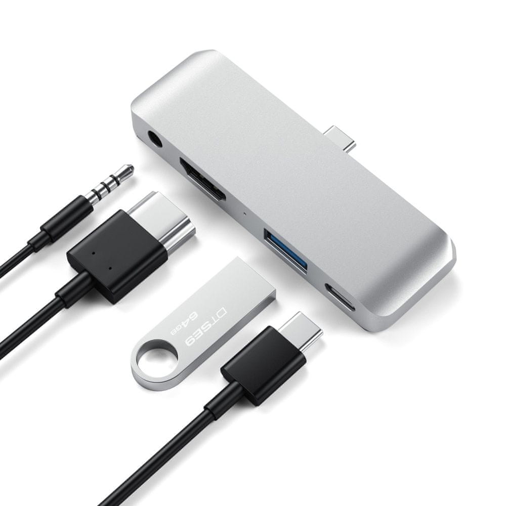 Satechi Aluminum Mobile Pro Hub для мобильных устройств USB-C (USB-C 60W, 4K HDMI, USB-A 3.0, Jack Port) (Silver) H2>