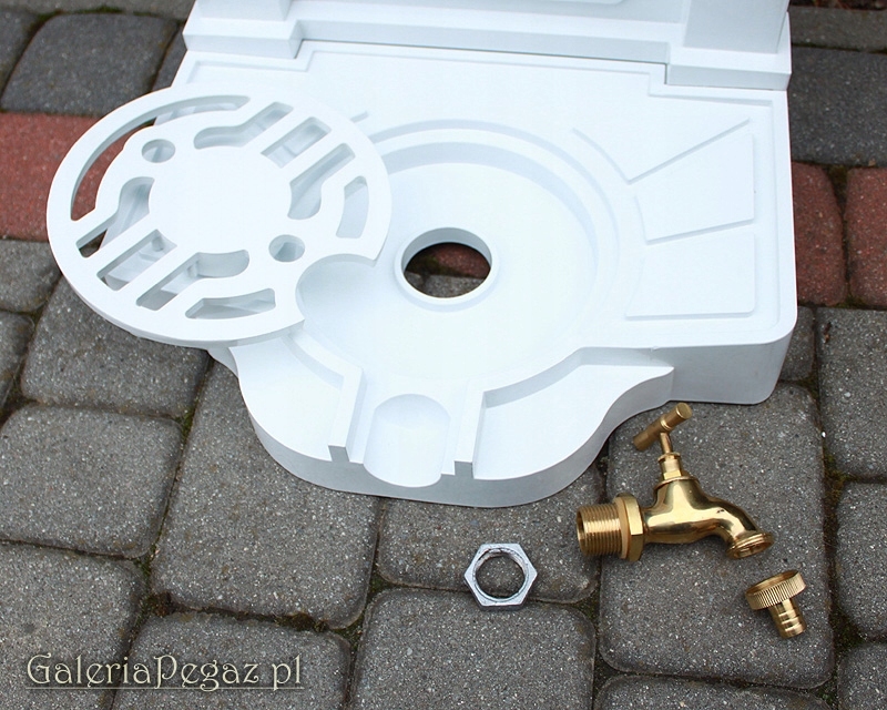 В комплект раковины входит латунный декоративный кран диаметром ¾ дюйма с резьбой, позволяющей установить быстроразъемный соединитель для садового шланга.
