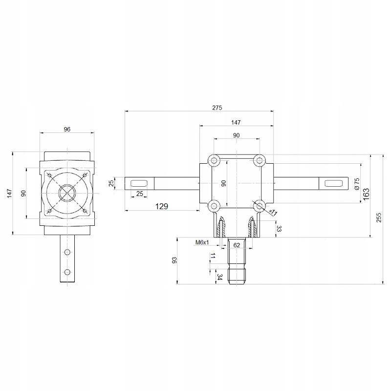 Центральная коническая передача для двухдискового воронкового разбрасывателя удобрений. Чугунный корпус, передаточное число: 1:1,14, выходная мощность: 12 кВт (16,5 км).