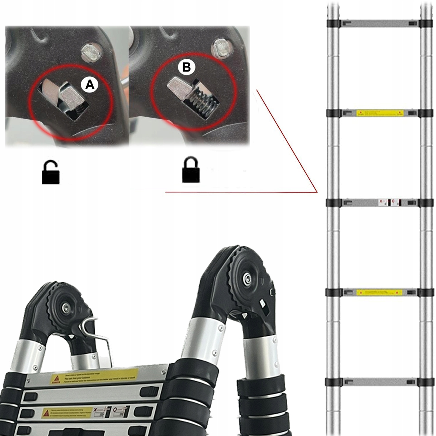 Переместите лестницу в положение блокировки двух петель, вы услышите «щелчок», в это время состояние заблокировано (B). Вы можете переключиться на безопасное использование, когда блокировка находится в разблокированном состоянии (A), высоту можно применить в соответствии с требованиями, что очень удобно
