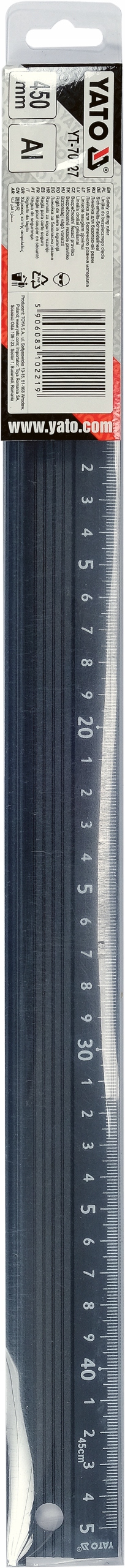 АЛЮМІНІЄВА ЛІНЬКА YATO З ЗАХИСНИМ ПРОФІЛЕМ І РУЧКОЮ 450 мм