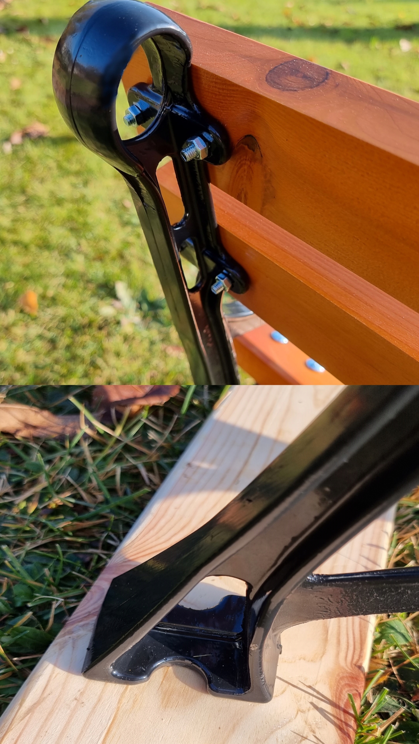 (Конкуренты используют обычные шурупы для дерева, и через несколько месяцев использования скамейка начинает разваливаться)
