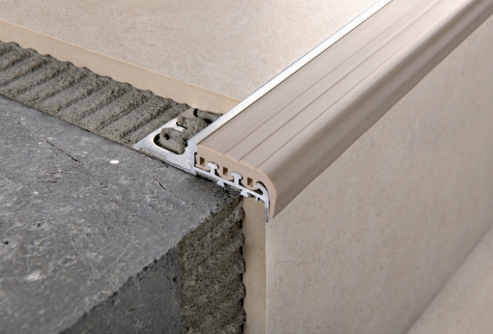 полосы отделки лестницы предназначены для повышения безопасности движения по лестнице. они выполняют не -скользящую функцию. они также защищают края керамических ступеней. Полоса состоит из алюминиевого основания высокой проливной и заменяемой резиновой части.