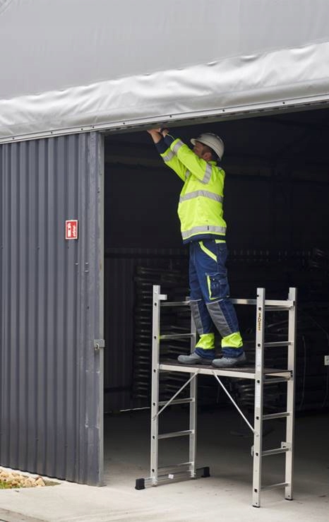 - Леса состоят из двух алюминиевых лестниц и рабочей площадки,