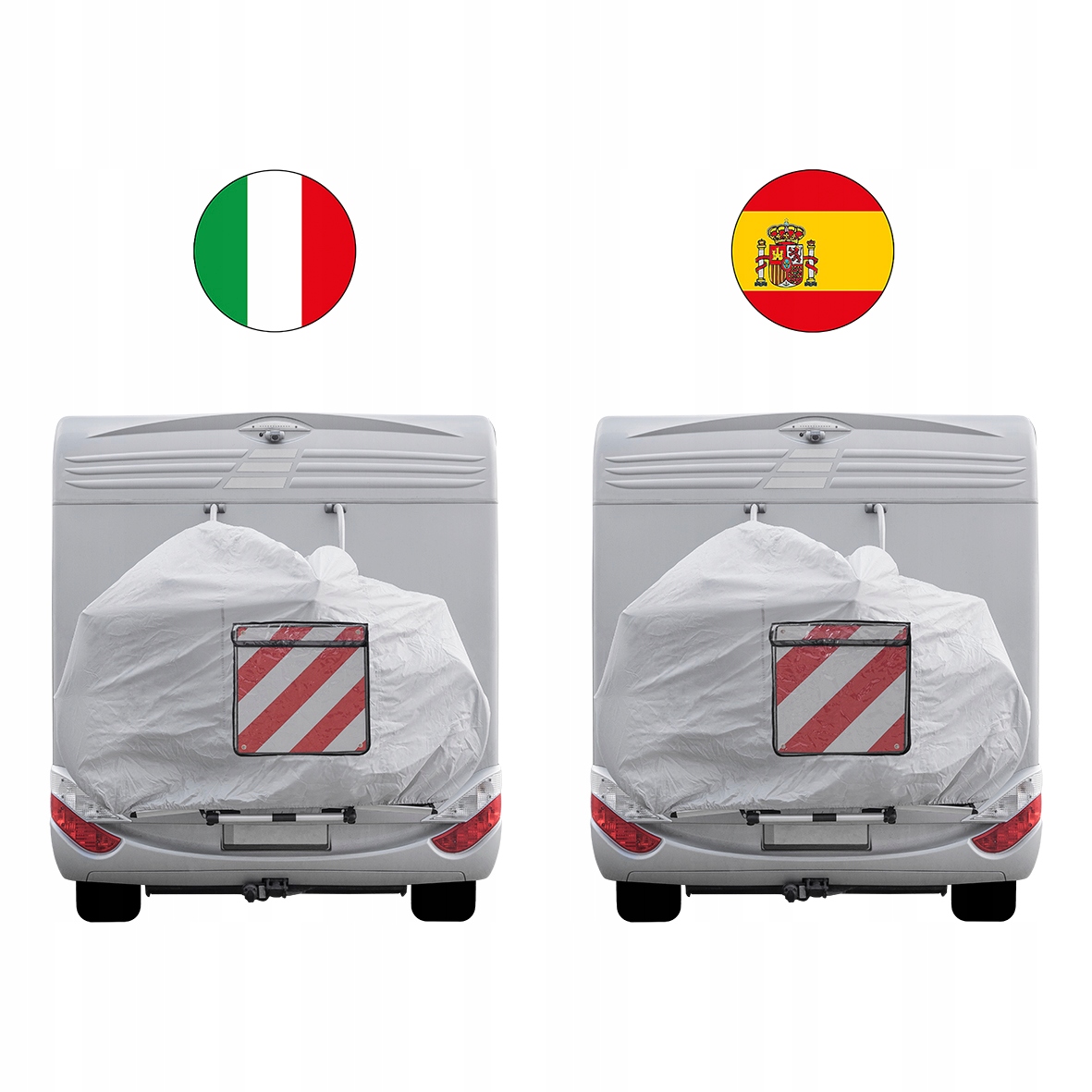 Во многих европейских странах водители должны демонстрировать предупреждающие знаки. В Испании, Италии, Польше, Венгрии и Великобритании существуют строгие положения относительно нагрузок, выступающих назад и транспортировки велосипедов. Наш предупреждающий знак заднего вида соответствует региональным дорожным руководствам и положениям Министерства промышленности Испании. Вы можете быть спокойны, если вы путешествуете с задним багажником велосипедов или другими предметами, такими как мебель, серфинг, каяки и каноэ, которые превышают общую длину автомобиля.