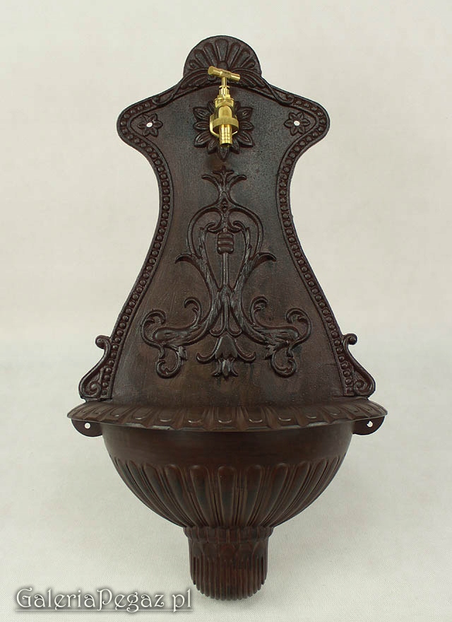 алюминиевый носик (раковина) с краном, украшенным растительным орнаментом. h2> стяжка может быть прикреплена к фасаду здания или другого элемента сада (например, заборов, беседки) с использованием четырех подготовленных отверстий. Связь. H2> Раковина имеет сбросы воды на дне чаши. h2> раковина из -за его низкого веса может быть прикреплена к плохого нагрузки. H2> Все создает функциональное украшение сада.