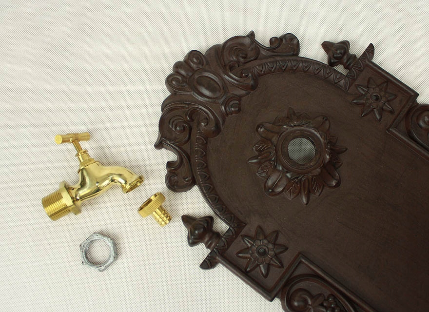 В комплект входит латунный кран, вкручивающийся в трубу (соединение) в стене.