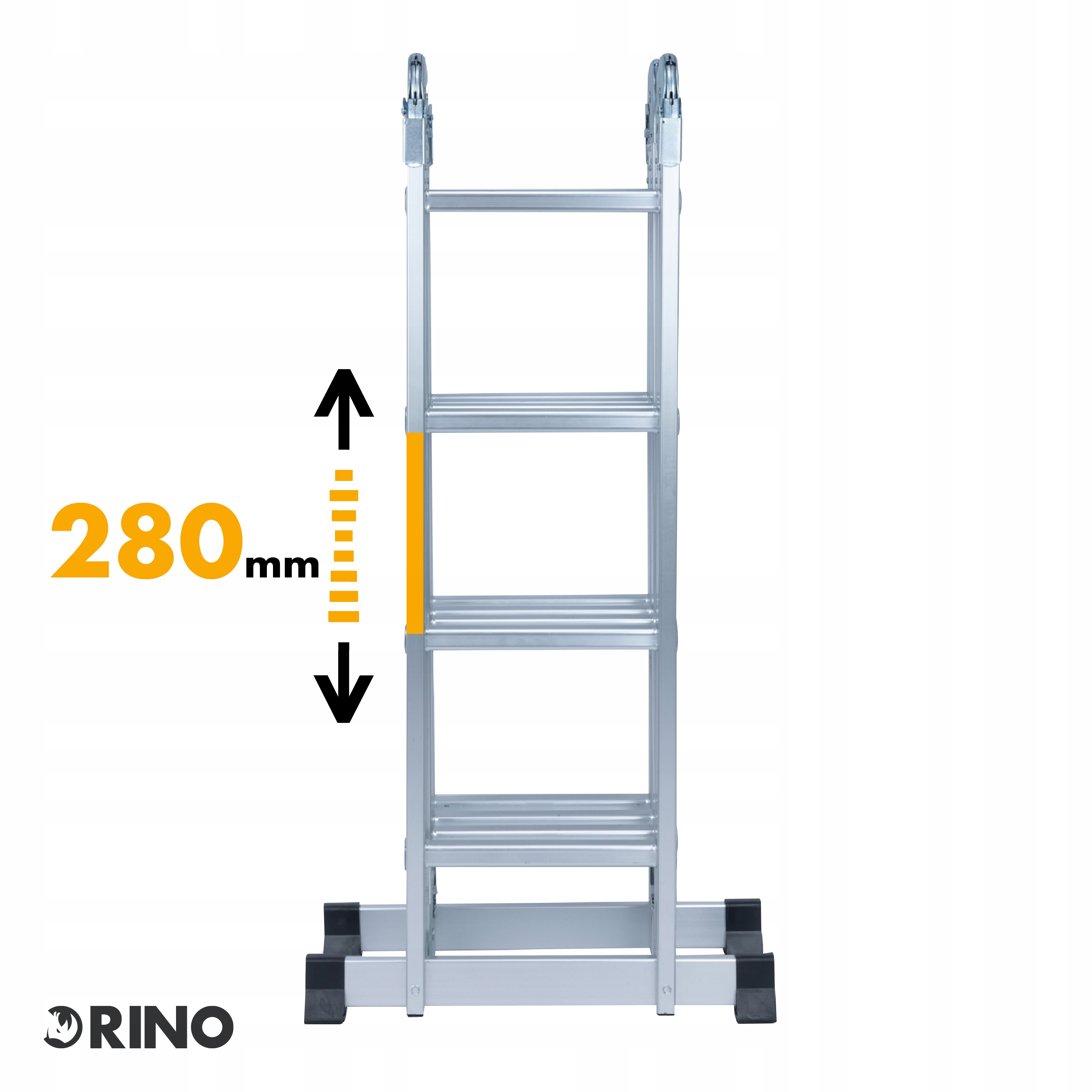 АЛЮМІНІЄВА ШАРНІРНА СКЛАДНА ДРАБИНА Rino 4x4 4,65м ЛЕГКА ПЛАТФОРМА 150кг