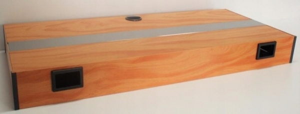Крышки изготовлены из пластика толщиной 3 мм и покрыты шпоном самого высокого качества от известных фирм. Отверстия обычно располагаются в задней стенке на расстоянии 80 мм от боковых краев, по одному отверстию справа и слева.