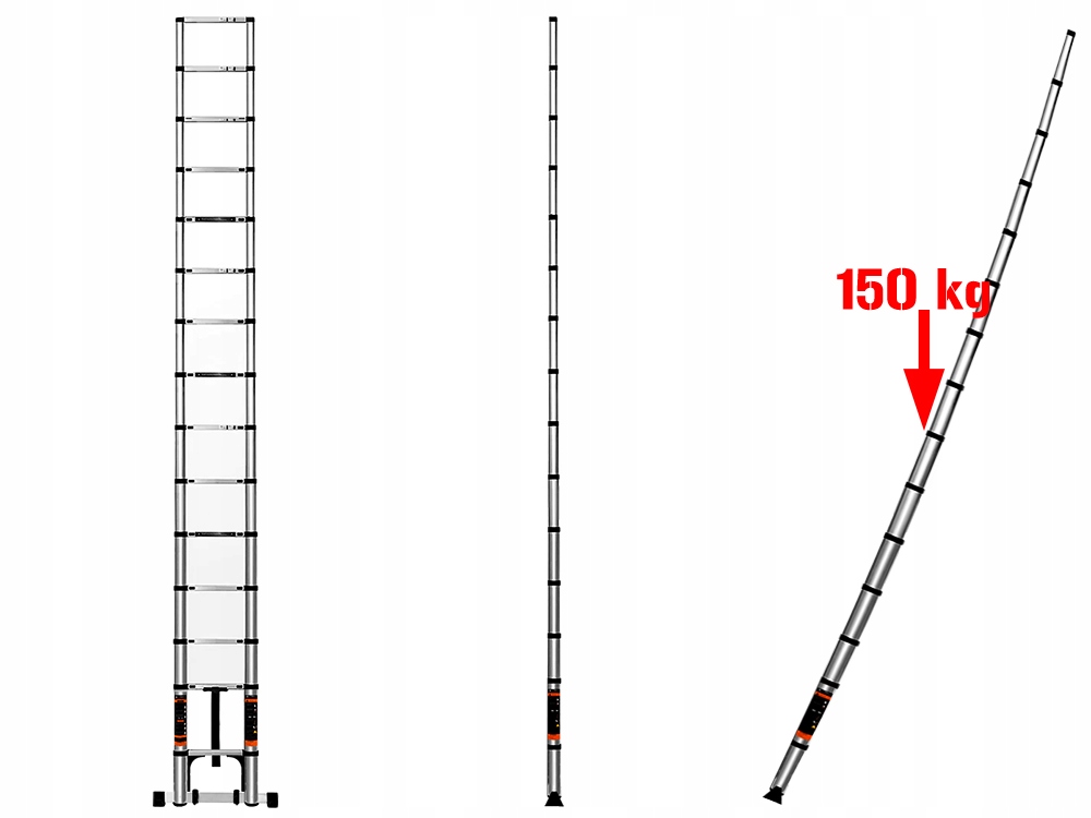 Из-за телескопической конструкции лестницы невозможно полностью придать ей жесткость. Каждый выдвижной элемент работает независимо от следующего, что вызывает некоторый люфт при раскладывании. Однако эти лестницы сертифицированы EN-131, что подтверждает их безопасное использование. При правильной поддержке вы можете использовать их с полной уверенностью.