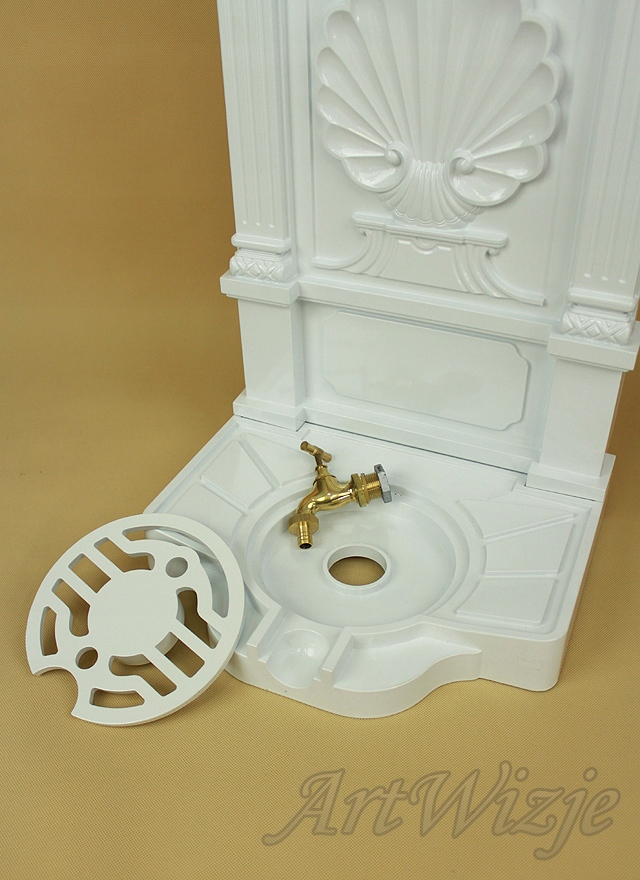 В раковине имеется отверстие дно для стока воды и решетка, на которую можно поставить наполненное ведро или лейку.