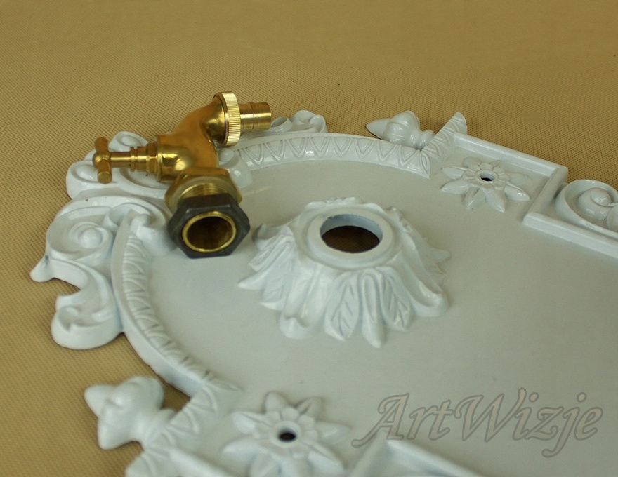 алюминиевый носик (раковина) с краном, украшенным растительным орнаментом. h2>