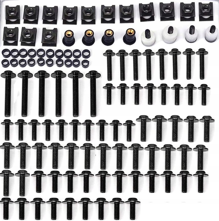 Набор алюминиевых винтов с нейлоновыми проставками и резиновыми втулками. Гильзы имеют металлический сердечник. Винты используются для крепления обтекателей и стекол мотоциклов. Они также подходят для квадроциклов мопедов и скутеров.