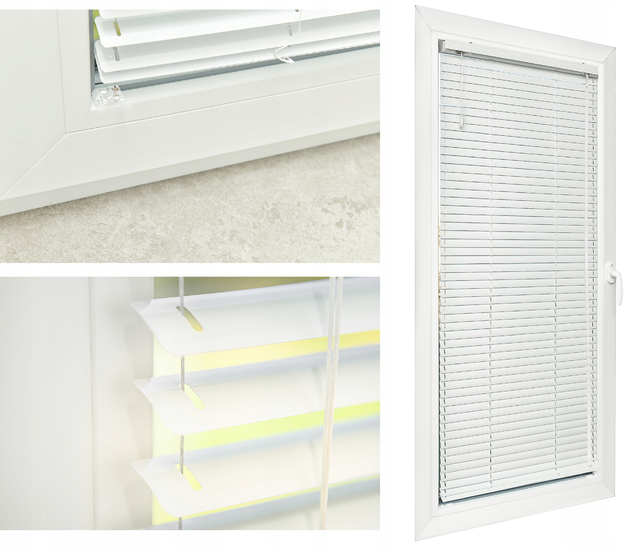 Шторка прикручивается к оконной раме в стеклопакете к верхнему и нижнему штапику. Жалюзи закрывают только поверхность стекла.