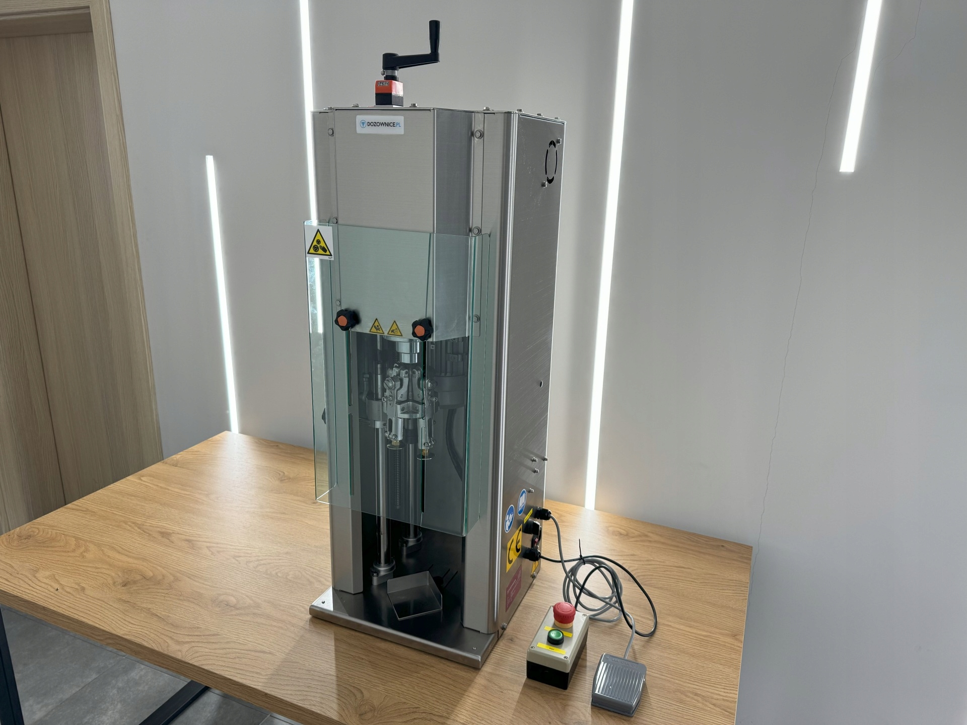 - Полуавтоматическая закрывающая бутылка широко используется в средней, маленькой или домашней винодельне, используемой для закрытия бутылок с пивом, соками. Машина делает нить на крышке и сжимает защитное кольцо. После откручивания крышки кольцо выбирается и остается на шее бутылки.
