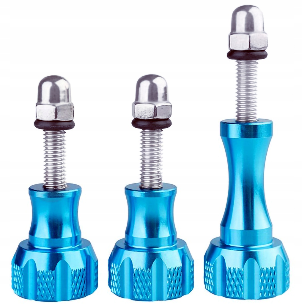 Набор из трех синих алюминиевых крепежных винтов для типа GoPro двух разной длины.