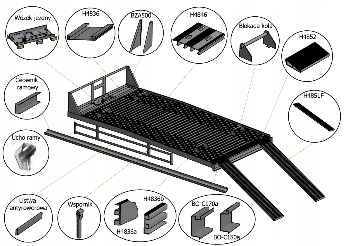 Перечень производимых элементов для платформ/прицепов:
