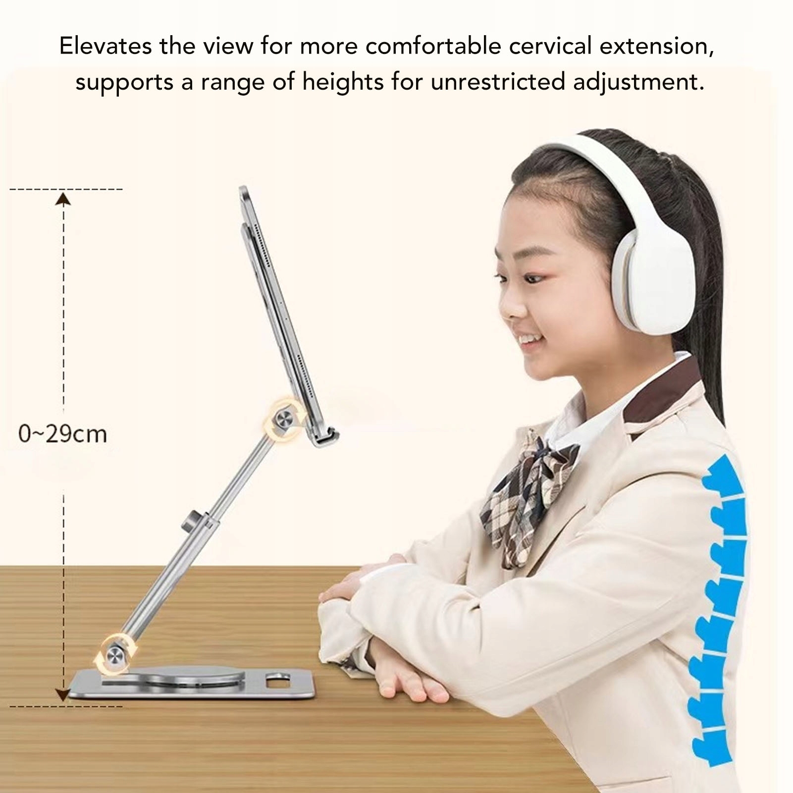 2. Регулируемая высота конструкция: при условии, что гибкая регулировка высоты, этот держатель таблеток предназначен для различных сценариев, помогая поддерживать озеру -цивикальную осанку и уменьшая деформацию во время длительного использования.