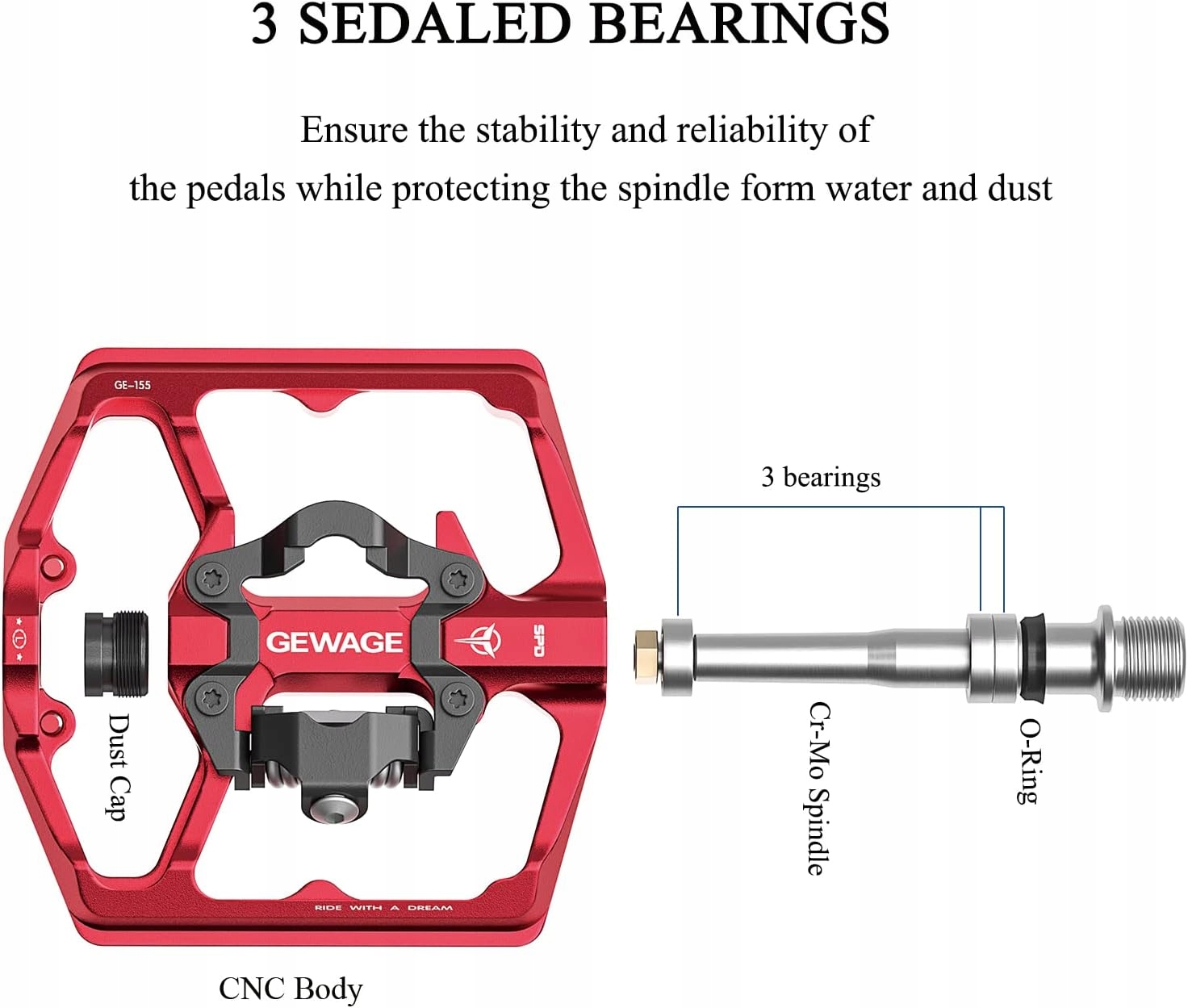 【ДВУХСТОРОННЯЯ ВЕЛОСИПЕДНАЯ ПЕДАЛЬ】 Многофункциональные педали без зажимов дают велосипедистам возможность использовать обувь без зажимов на стороне без зажима (поставляется с уплотнением SPD*2) или обычную обувь на плоской стороне педали. Эта педаль имеет размеры 7,09 x 5,12 x 2,36 дюйма и весит всего 1,28 фунта, что делает ее широкой, но легкой, и очень популярной среди пассажиров, велосипедистов по гравию, а также горных велосипедистов.