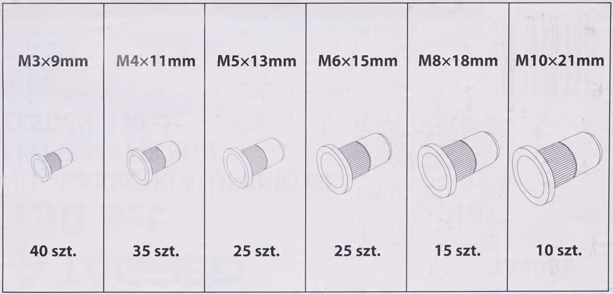 Алюминиевые заклепки-гайки размеров от M3 до M10. Имеют цилиндрический фланец с накаткой, благодаря чему более плотно прилегают к закрепляемому элементу. Заклепки-гайки TAGRED позволяют ввинчивать винт или винт с метрической резьбой в листовой металл или другие материалы, где нарезка резьбы невозможна.