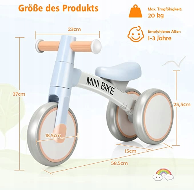- ЭРГОНОМИЧНЫЙ ДИЗАЙН. Седло изготовлено из экологически чистого полиуретана, амортизирует удары и удобно в течение длительного времени, а гибкая конструкция гарантирует, что ваш ребенок не упадет. Высота седла подходит для детей от 1 до 3 лет.